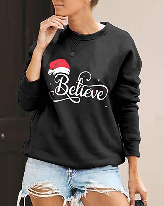• Design Features: Christmas believe sweatshirt, cute Christmas top for women, women's long sleeve letter print pattern sweatshirt, round neck design, no tight neck, casual long sleeve pullover, suitable for spring, fall or winter, no matter you Wear it and you'll get tons of compliments.