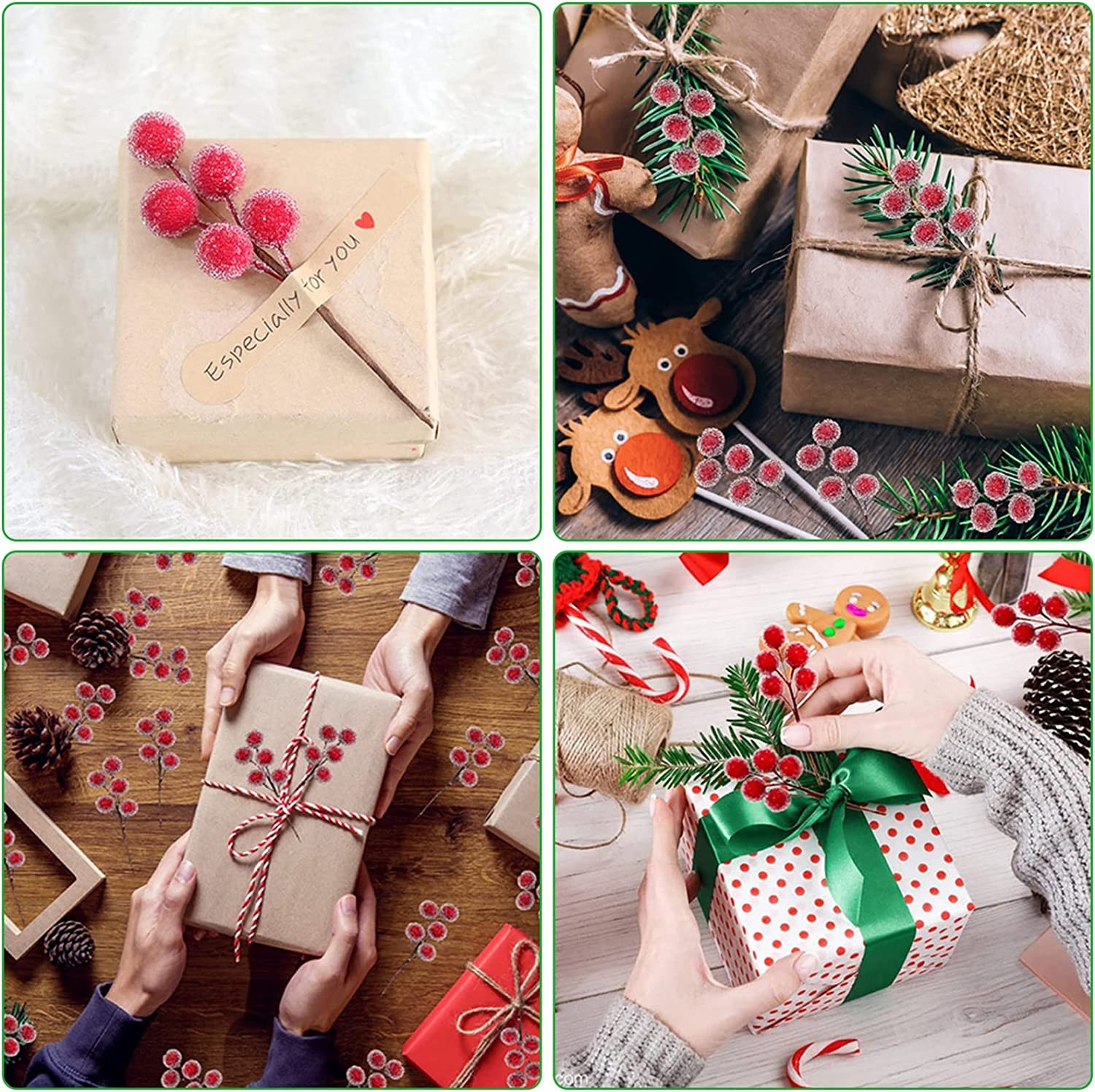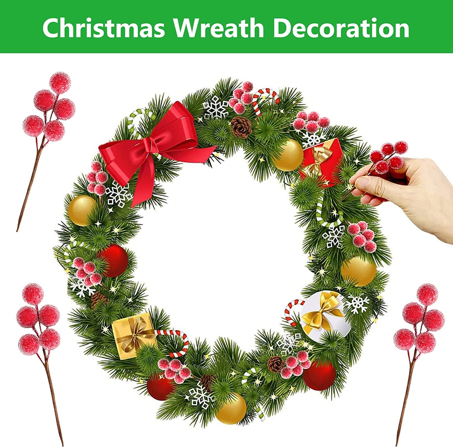 • 【WIDE APPLICATION】Christmas glitter holly berries are great for decorating your house, Christmas wreaths, garlands, Christmas tree, DIY crafts, gift wrapping, wedding party, Christmas card making, table setting, bouquets, banquets, hotels, shops, etc