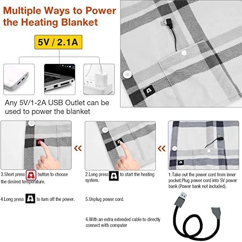 Heated cape blanket, portable wearable 5V USB electric heating cloak, home, office, car, camping, fish, picnic, sports, football, concert, 55x32 inch