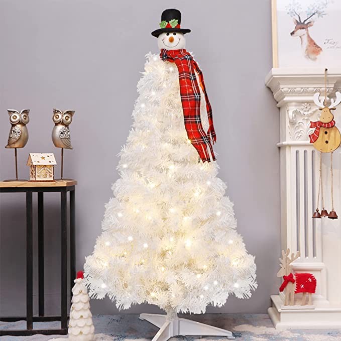 Juegoal 4FT Pre-lit White Artificial Christmas Tree with Snowman Tree Topper