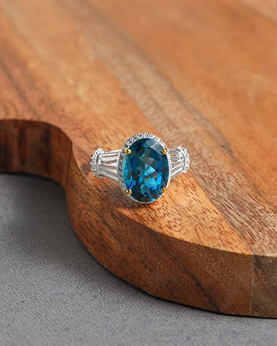 YoTreasure London Blue Topaz and White Zircon Ring in 14K Gold Plated Silver 925